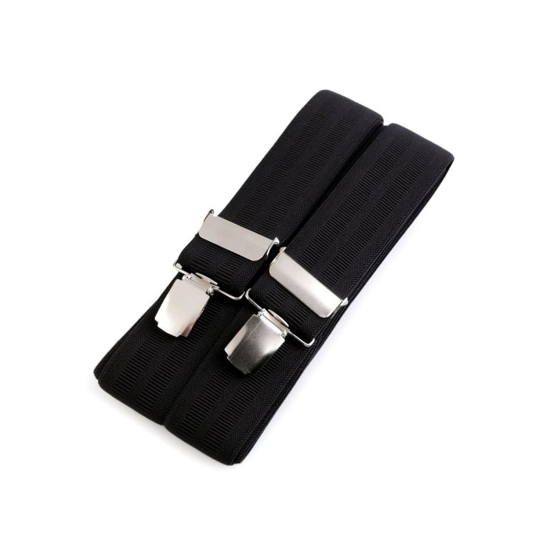 Klasické pánské šle (kšandy) v černé barvě s dvěma vroubkovanými proužky české výroby ze 100% polyesteru zaručují dobrou kvalitu za příznivou cenu. Provedení je ve tvaru „X“ a upevňují se ke kalhotám pomocí kovových žabek. Šířka popruhů činí 3,5cm a délka 125cm. Díky její nastavitelnosti lze tyto šle použít pro výšku postavy od 165cm do 190cm. Využití najdou jak pro běžné nošení přes košili, tak i k obleku. Jsou tedy nejen funkčním pomocníkem, ale i moderním módním doplňkem.