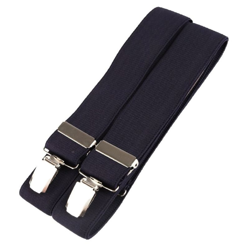 Pánské šle tmavě modré s nastavitelnou délkou 125 cm, šíře 3,5 cm v provedení ve tvaru písmene "X" s uchycením na žabky.