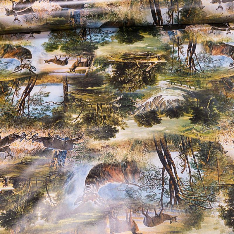 Omyvatelná PVC ubrusovina s podkladem z netkané textilie s mysliveckým motivem v zelených barvách s hladkým povrchem. Ubrus je dostupný v metráži o ší...
