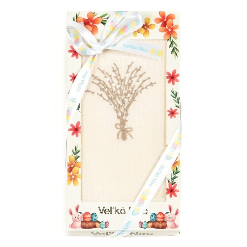 Utěrka KIARA VELIKONOCE 06 vaflová vyšívaná, dárkové balení, kočičky vrby na smetanové, 1 kus 50x70cm