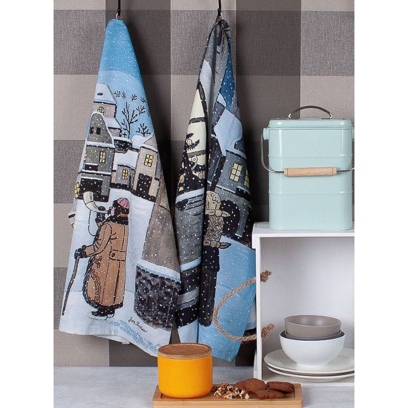 Bavlněné utěrky s motivem zimy v typické kresbě Josefa Lady v modro-bílém provedení v rozměru 50x64cm. Utěrky mají jednostranný vzor a jsou vyrobeny ze 100% bavlny. Utěrky jsou v dárkovém balení vždy 1x motiv zimy v noci, 1x motiv ve dne.