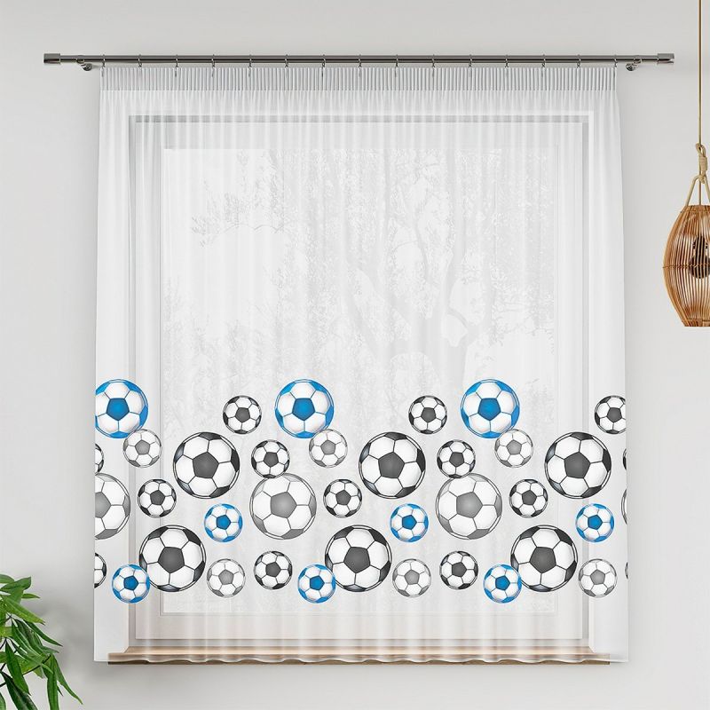 Metrážová šifonová záclona (voál) je velmi jemná a vysoce kvalitní tkaná záclona se vzorem fotbalových míčů. Záclona je vyrobena ze 100% polyesteru a ...