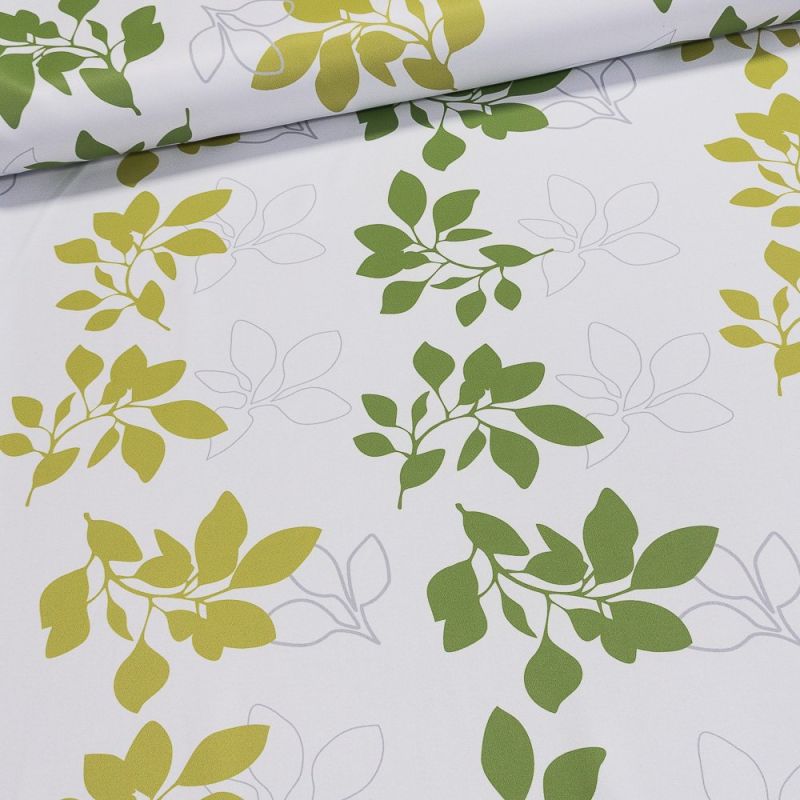 Zatemňovací / termoizolační závěs, blackout 10008/03 zelené listy na bílé, šířka 150cm (látka v metráži)