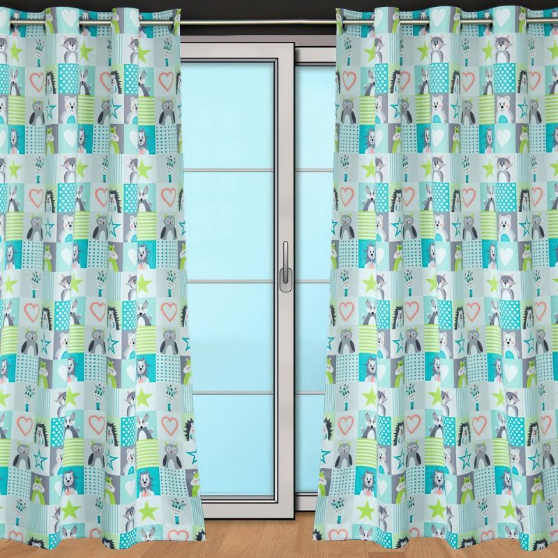 Zatemňovací / termoizolační závěs dětský, blackout 10004/10 ZVÍŘÁTKA PEXESO, tyrkysovo-bílý, šířka 150cm (látka v metráži)